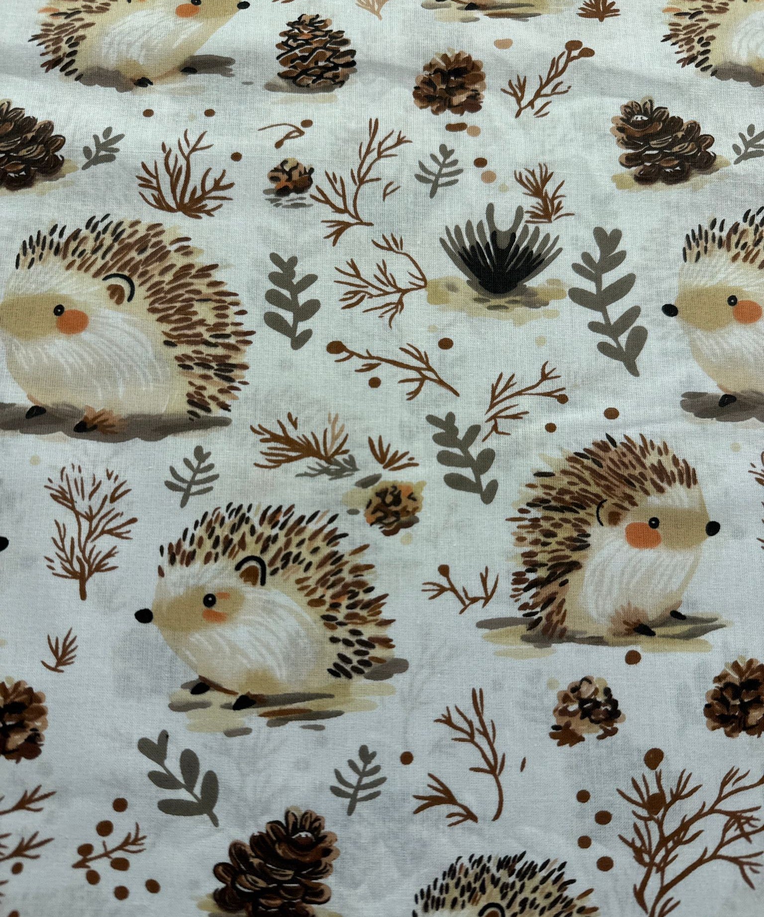 Stirniņas un ziedi uz pienbalta pamata, muslīns