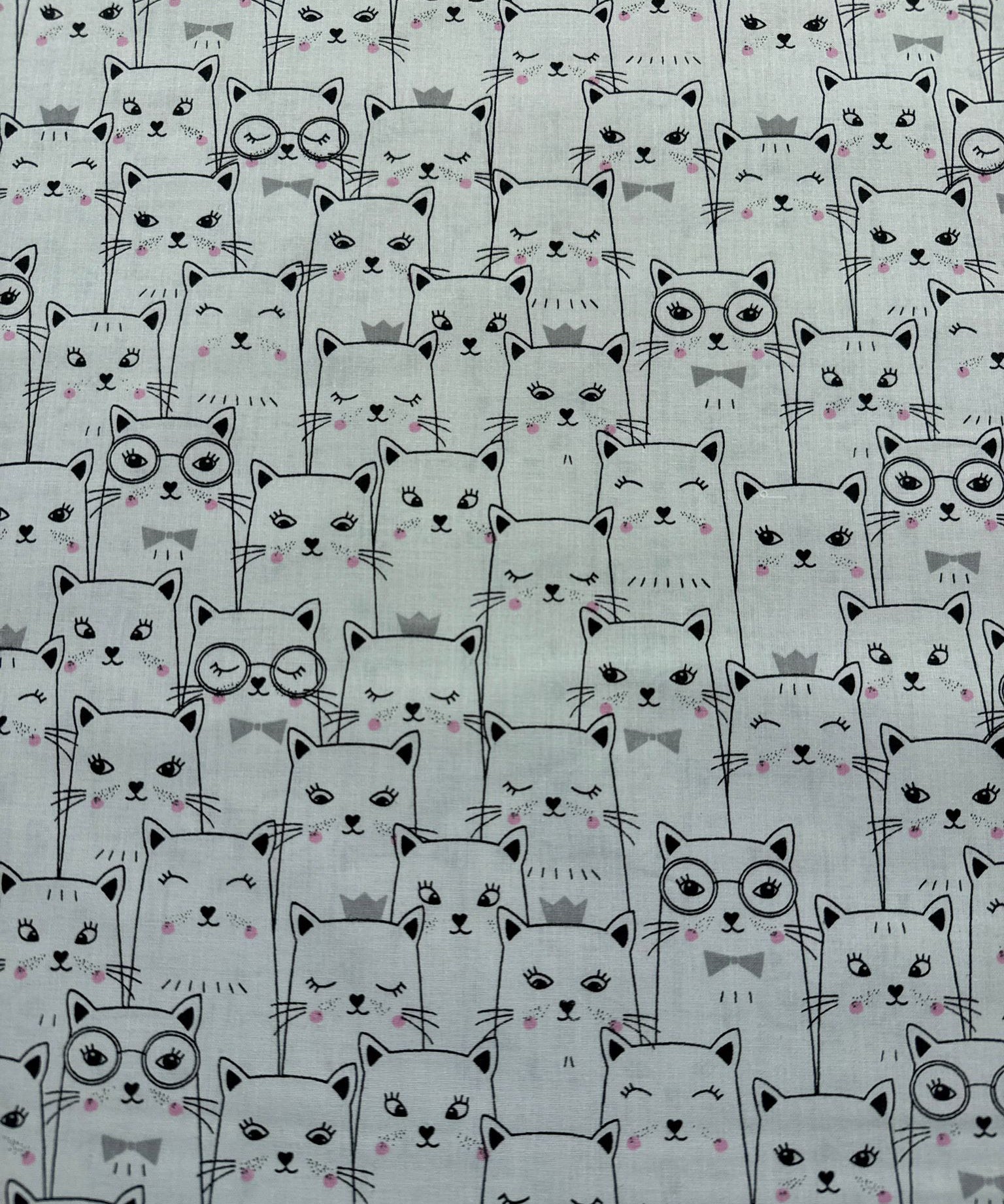 Kaķi ar rozā bantēm, balts pamats