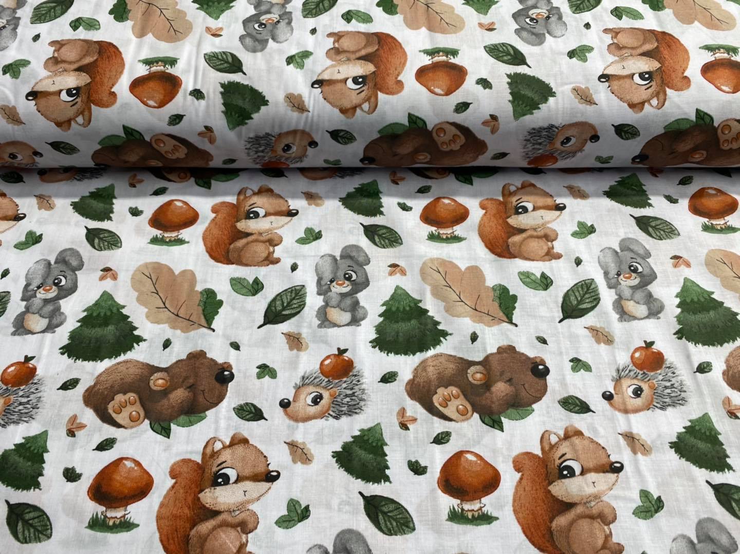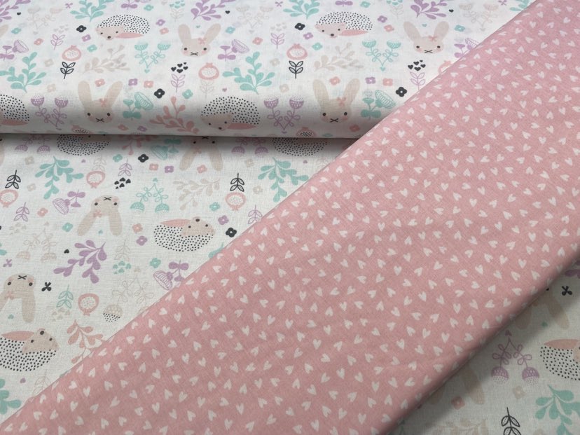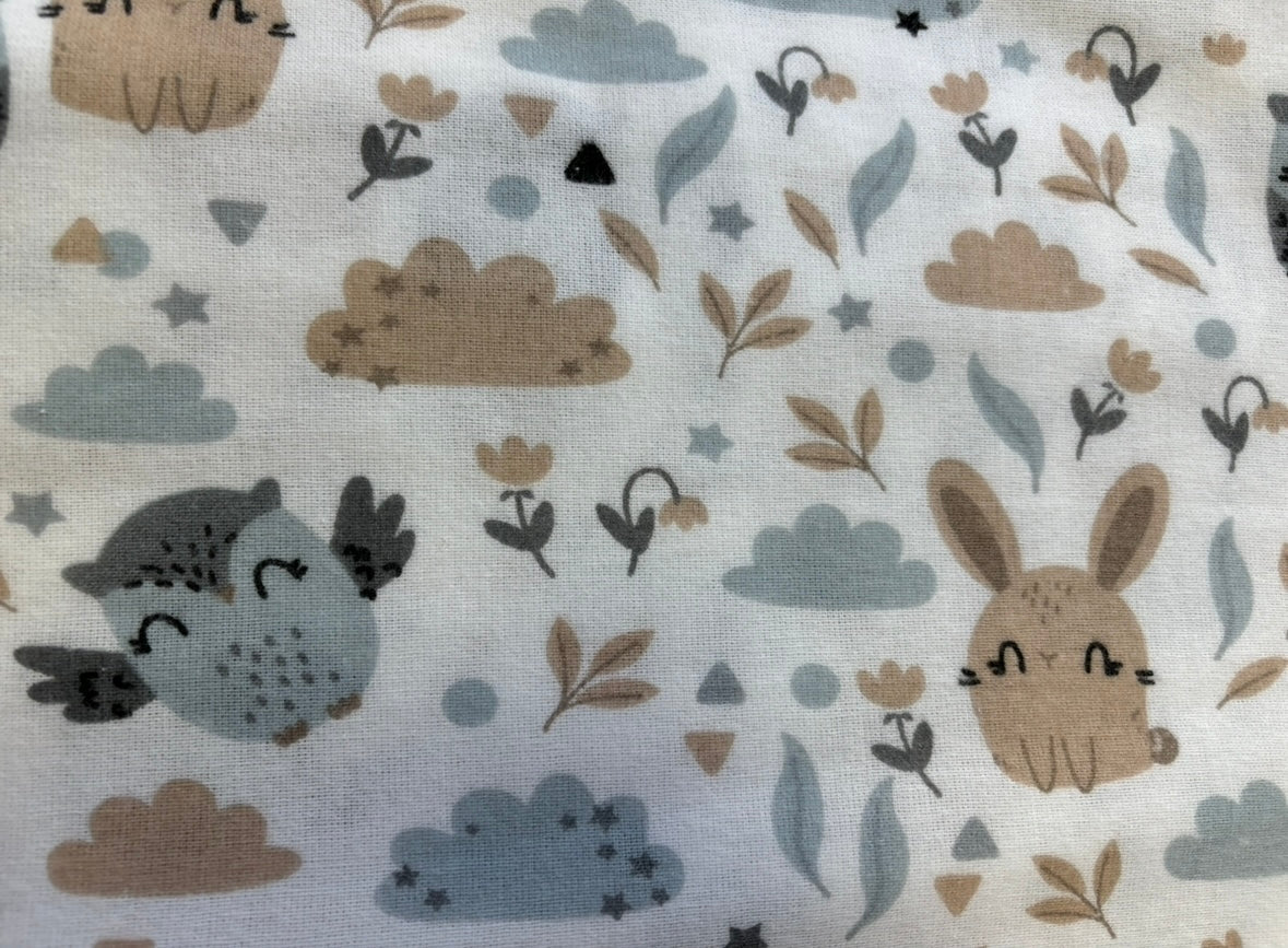 Pūces un zaķēni uz balta pamata, flanelis.