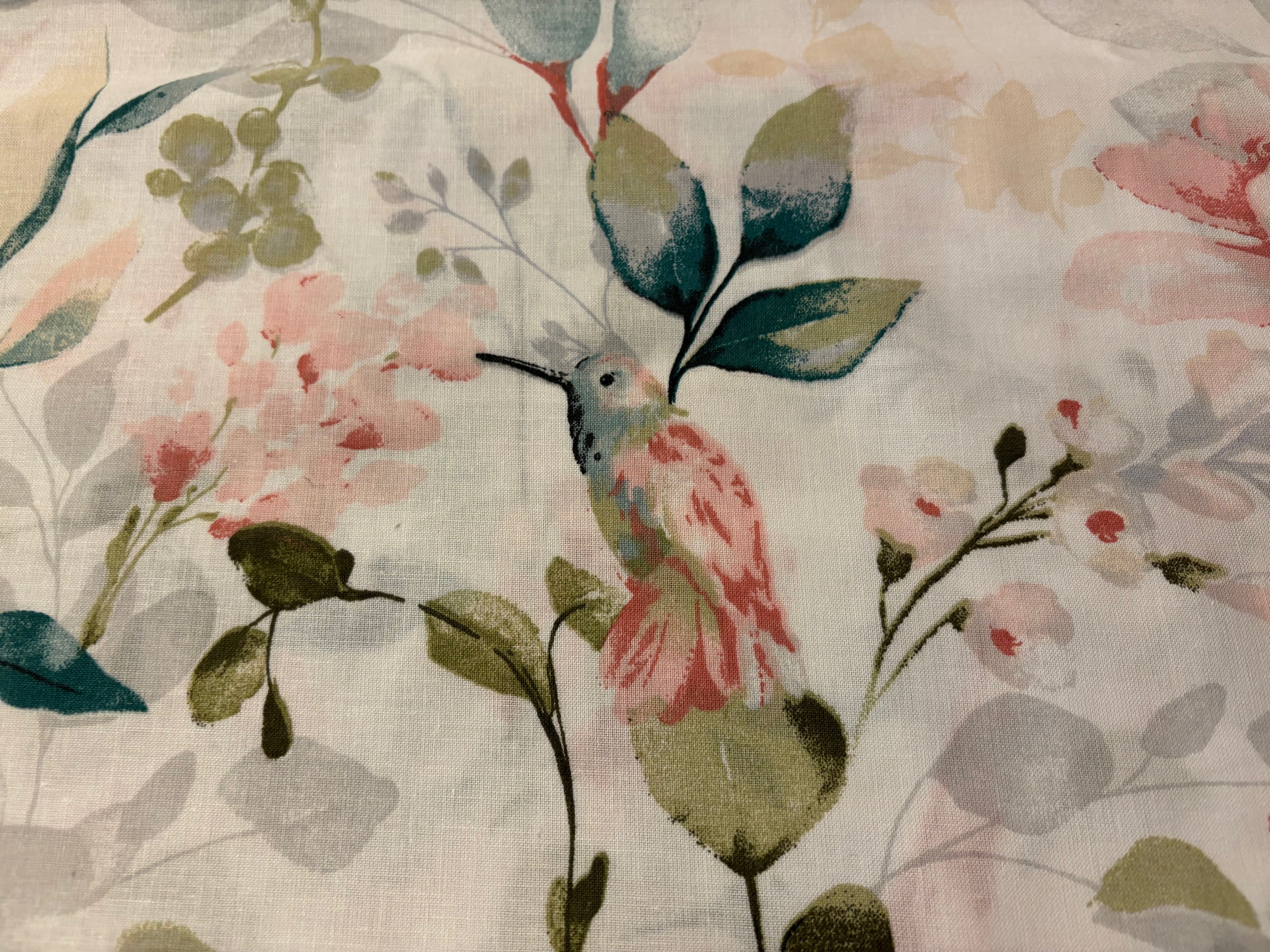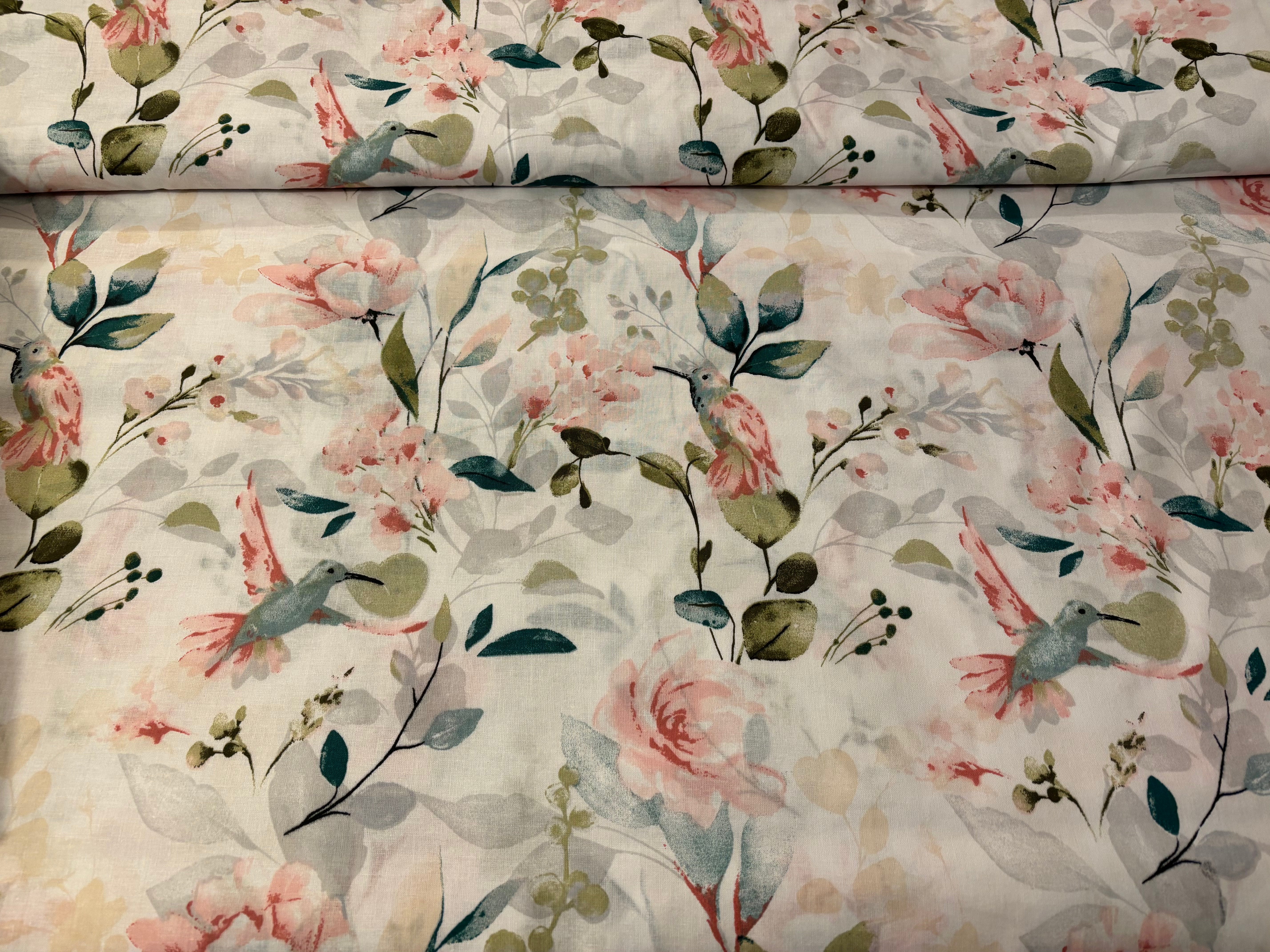 Kolibri pasteļtoņu ziedos, balts pamats