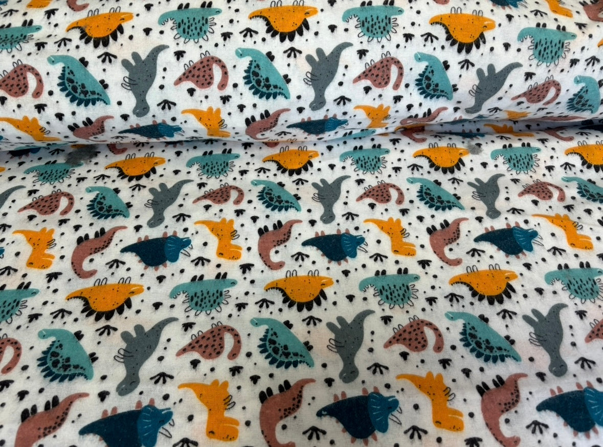 Krāsaini dinozauri uz balta pamata, flanelis.