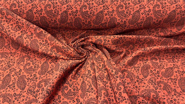 Brick orange muslin with black kidney pattern